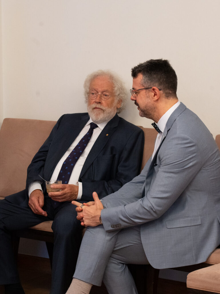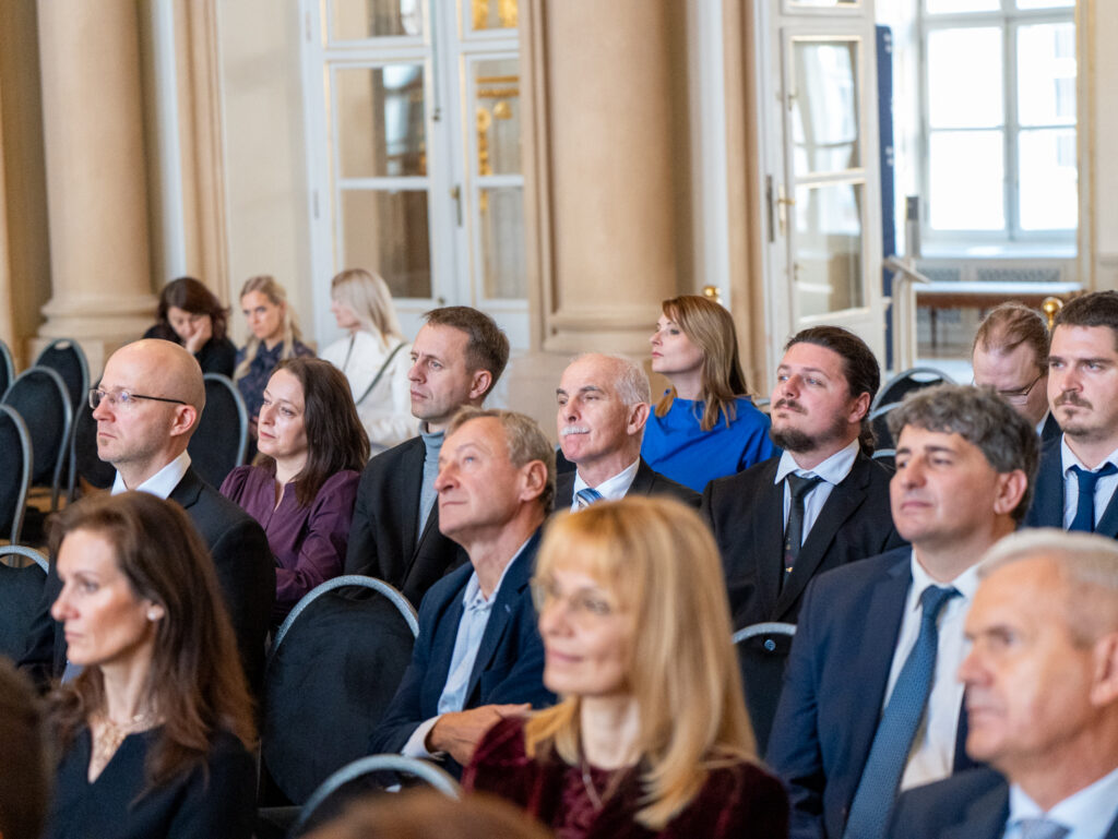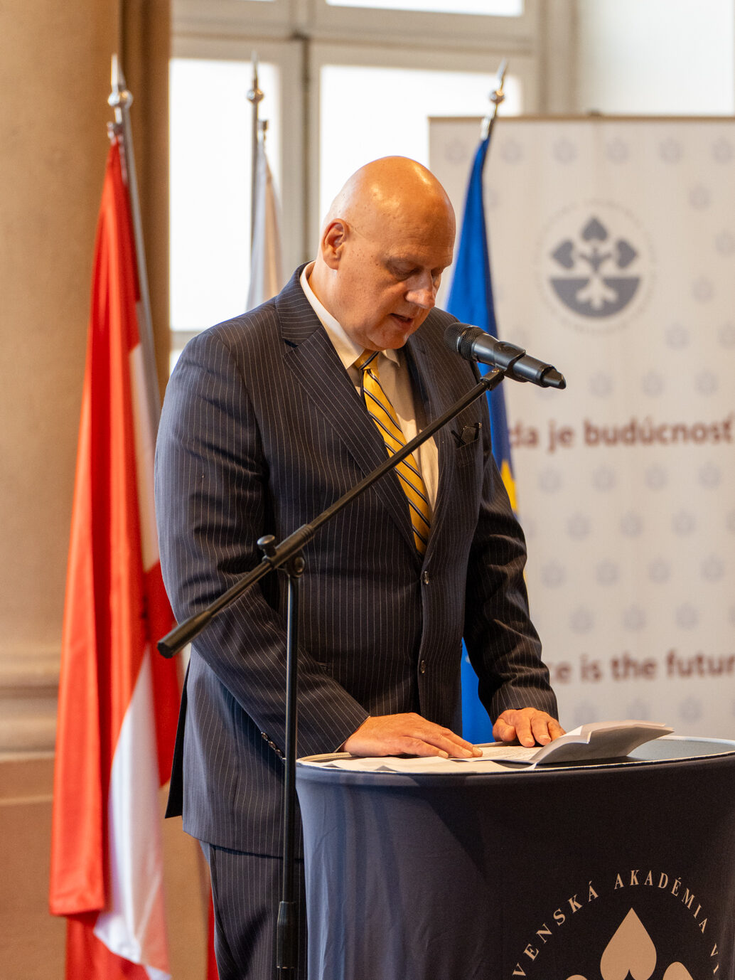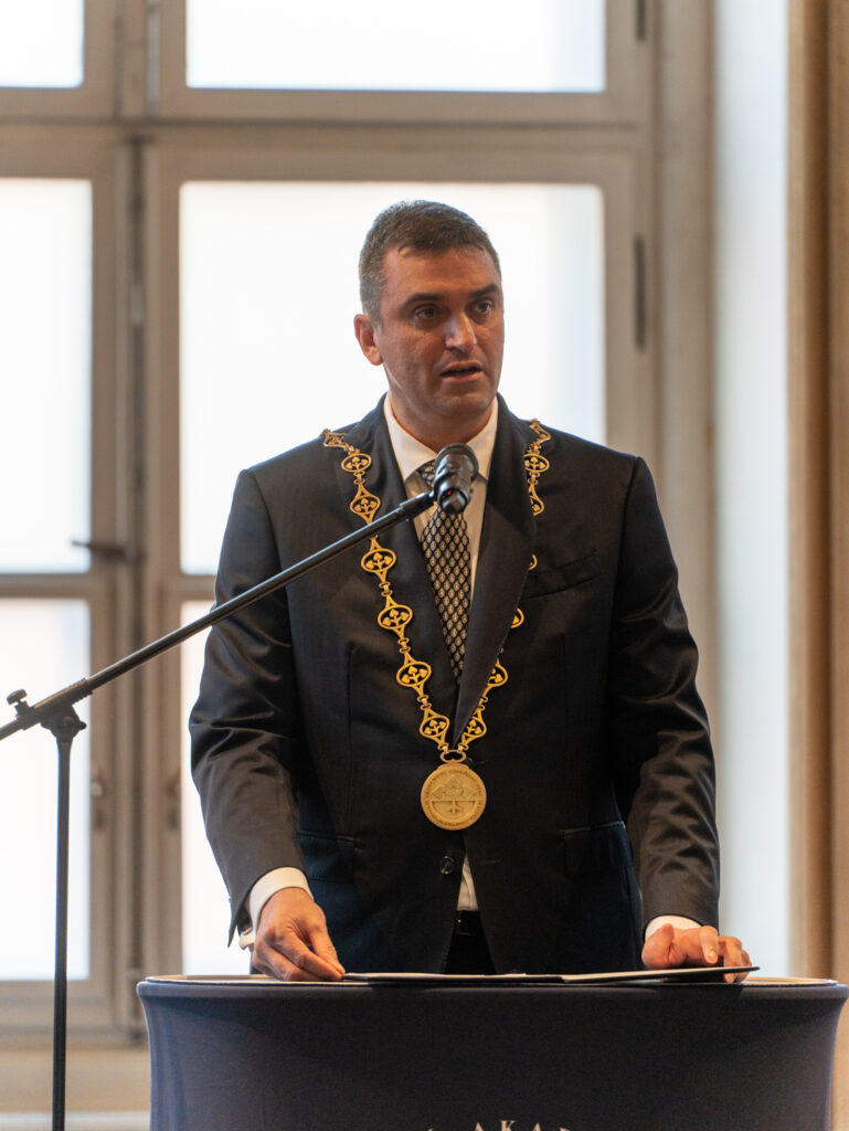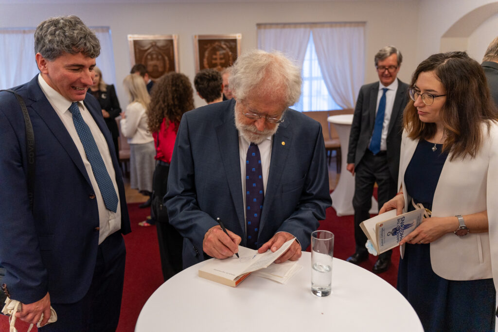 Following the opening fanfares President of the Slovak Academy of Sciences , Dr. Martin Venhart, delivered a powerful address honoring Professor Zeilinger’s remarkable contributions to quantum physics. He emphasized how Zeilinger’s pioneering experiments transformed abstract theory into experimental reality, providing empirical proof of quantum entanglement – what Einstein once called “spooky action at a distance”, linking his discoveries to our understanding of the universe itself. He also reflected on the importance of European cooperation, noting that the collaboration between Professor Zeilinger and Slovak physicist Professor Vladimír Bužek stands as “the most illustrative example of what can be achieved in a democratic, free, open, and unified world and society.”