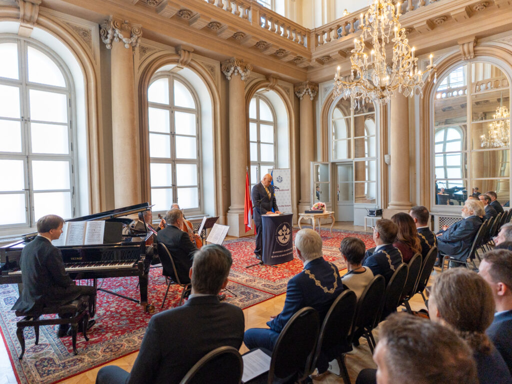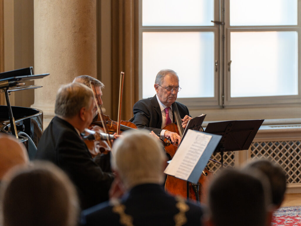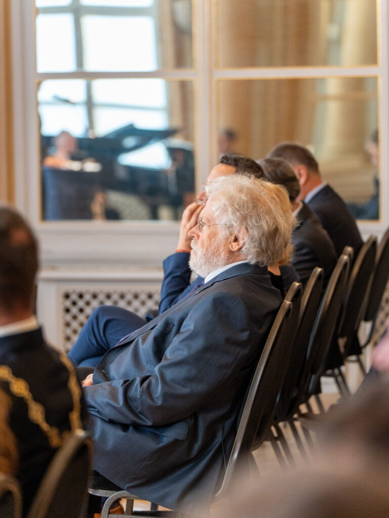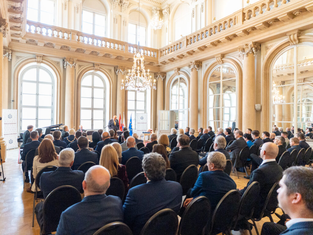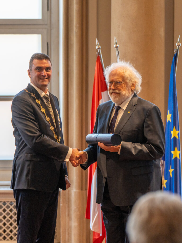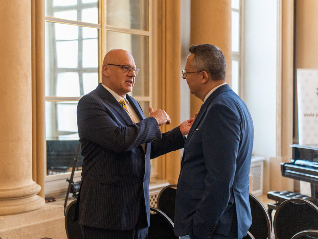 Following the opening fanfares President of the Slovak Academy of Sciences , Dr. Martin Venhart, delivered a powerful address honoring Professor Zeilinger’s remarkable contributions to quantum physics. He emphasized how Zeilinger’s pioneering experiments transformed abstract theory into experimental reality, providing empirical proof of quantum entanglement – what Einstein once called “spooky action at a distance”, linking his discoveries to our understanding of the universe itself. He also reflected on the importance of European cooperation, noting that the collaboration between Professor Zeilinger and Slovak physicist Professor Vladimír Bužek stands as “the most illustrative example of what can be achieved in a democratic, free, open, and unified world and society.”