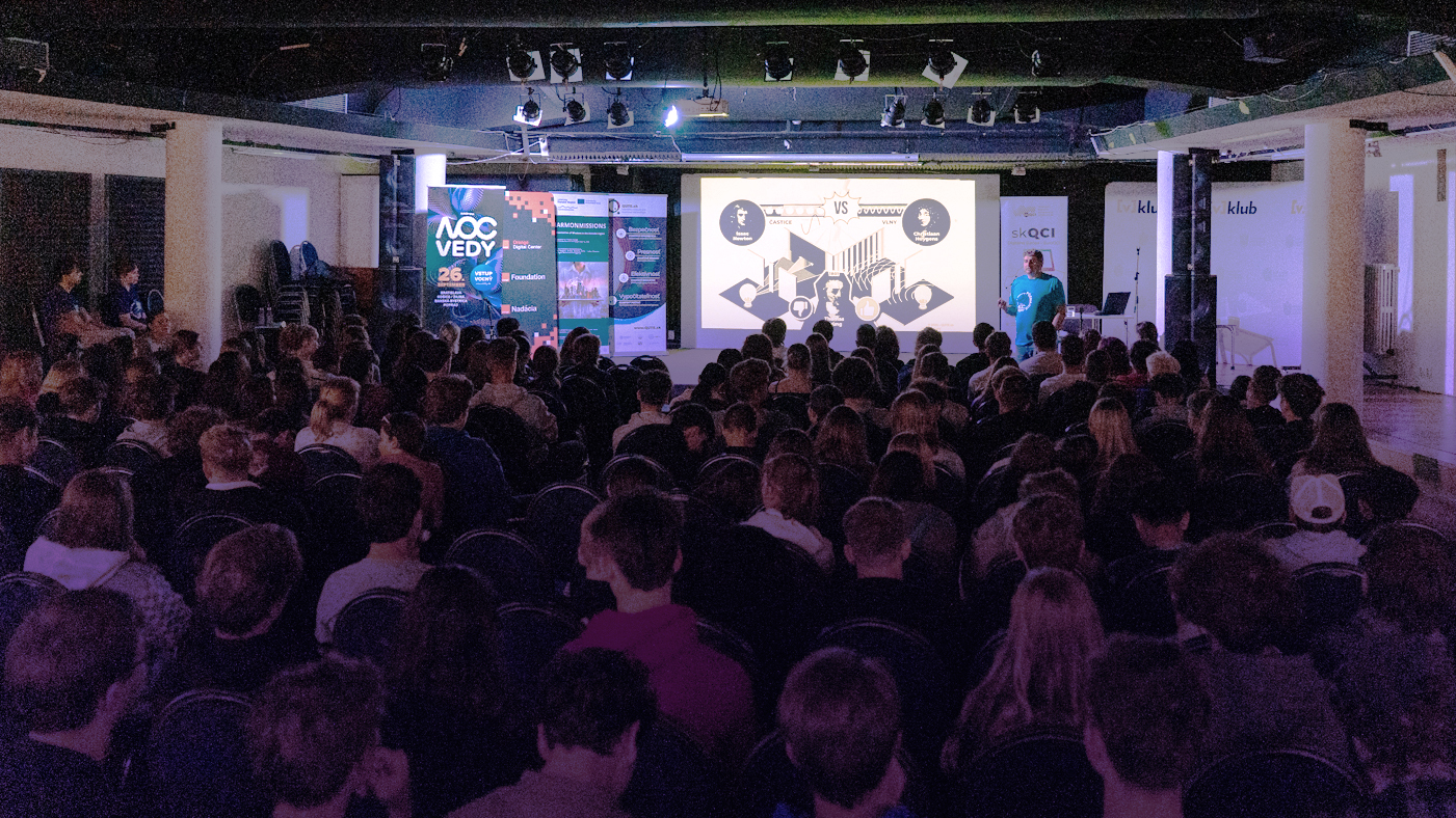 V-Klub v Bratislave sa 26. septembra 2025 premenil na miesto, kde sa spojili veda, zvedavosť a nadšenie pre kvantové technológie. Pri príležitosti Medzinárodného roka kvanta sme priniesli do Noci vedy rozsiahlu Kvantovú zónu, v ktorej mohli návštevníci prejsť cestu od základných princípov fyziky až po najmodernejšie technológie.