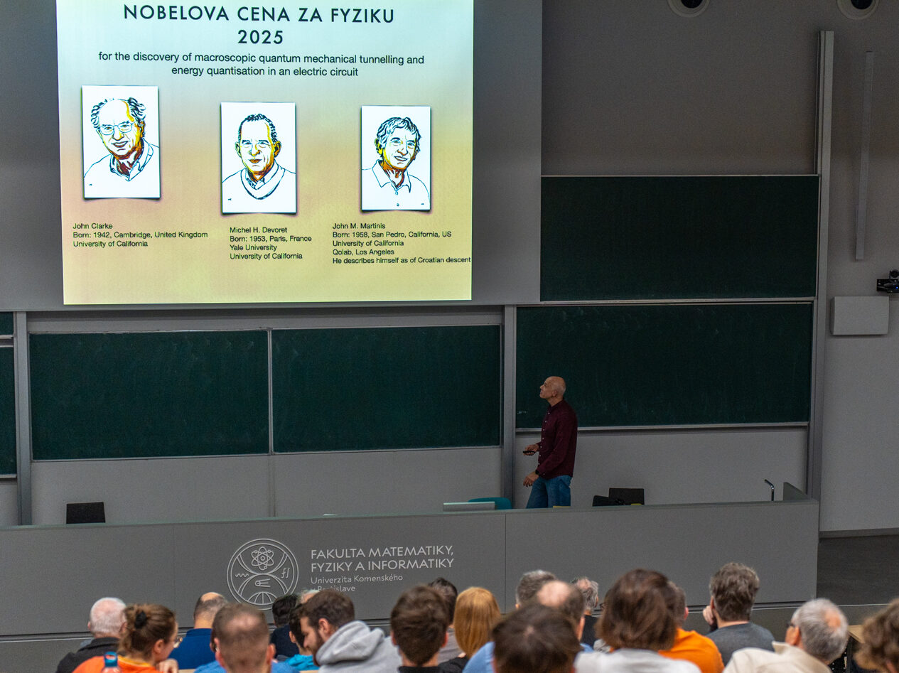 Prednáška prof. Miroslava Grajcara o Nobelovej cene za fyziku 2025 priblížila, ako makroskopické kvantové javy preformovali naše chápanie kvantových zariadení a prepojili základný objav s rozvíjajúcimi sa technológiami v oblasti výpočtov a merania v kvantovej ére.