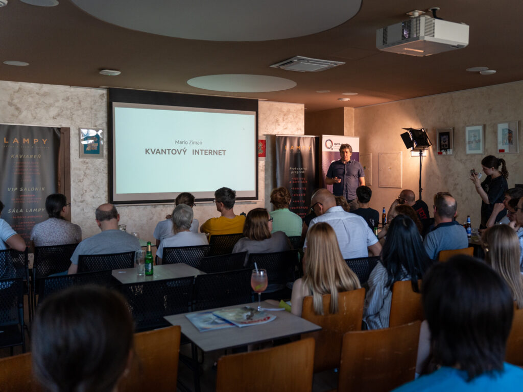 Prednáška Kvantový internet Mária Zimana v Krajskej knižnici P. O. Hviezdoslava v Prešove o tom ako funguje kvantová komunikácia.
