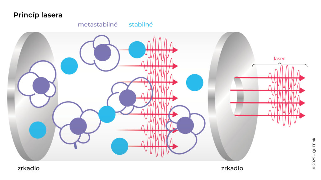 Princíp lasera – lavínová spontánna emisia zväzku identických fotónov