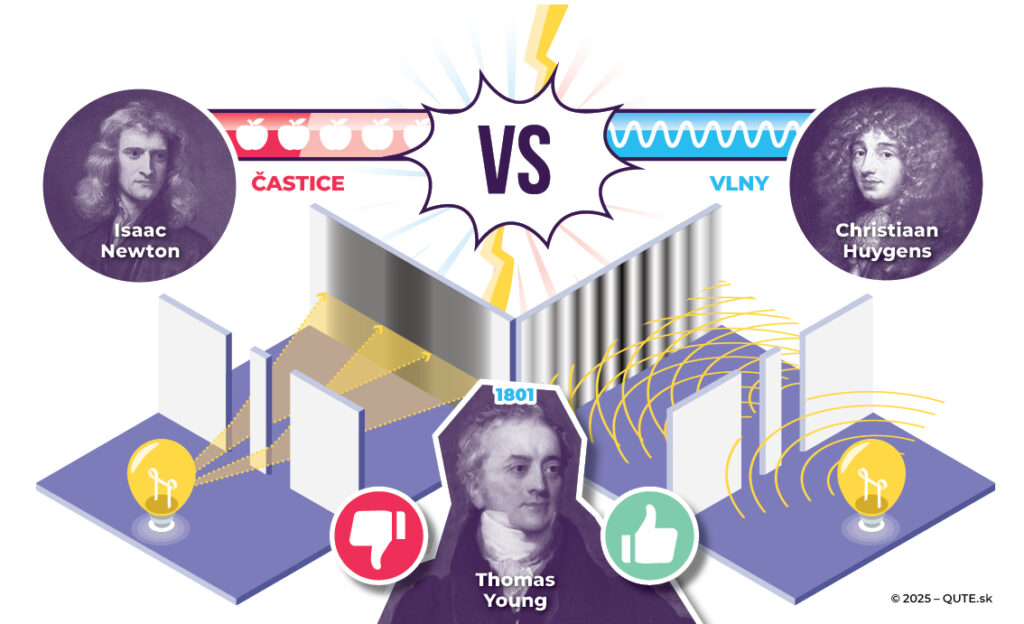Rozhodnúť tento spor raz a navždy sa podujal anglický fyzik Thomas Young. V roku 1801 zrealizoval tzv. dvojštrbinový experiment. V tomto experimente svetlo (nech už je to čokoľvek) prechádza cez dva úzke otvory (štrbiny) umiestnené relatívne blízko pri sebe. Po prechode týmito štrbinami sa vytvorené svetelné vlny z každej zo štrbín sčítajú a vytvoria na tienidle umiestnenom za štrbinami obrazec zo striedajúcich sa svetlých (konštruktívna interferencia) a tmavých (deštruktívna interferencia) pruhov, tzv. interferenčný obrazec.