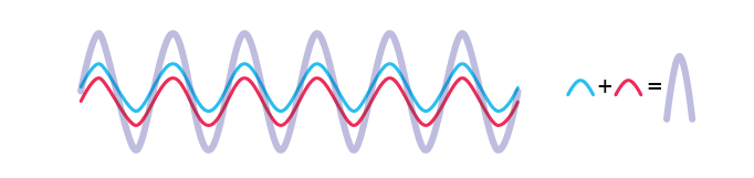 Uvažujme pre jednoduchosť vlnenia popísané funkciou sínus, pre ktorú majú minimá a maximá symetrické hodnoty. V prípade, že sa stretnú dve rovnaké vlnenia, ktorých maximá a minimá sa navzájom prekrývajú, hovoríme, že kmitajú vo fáze. Po sčítaní sa maximá, aj minimá zdvojnásobia a hovoríme o konštruktívnej interferencii. Ak sa však stretnú vlnenia posunuté o polovicu vlnovej dĺžky, tak sa maximum jednej vlny stretne s minimom druhej vlny a navzájom sa vyrušia. Hovoríme, že vlnenia kmitajú v protifáze a výsledkom bude deštruktívna interferencia – vlnenie úplne zanikne.
