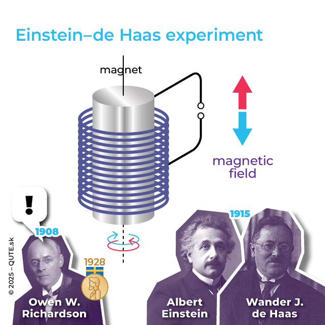 Systems with half-integer spin are called fermions, and systems with integer spin are called bosons. Fermions, when they form a single system, behave “antisocially” and it’s impossible for them to share the same set of parameters (Pauli exclusion principle). Bosons, on the other hand, tend to “gather in communities,” occupying states with identical characteristics. The “antisocial” nature of electrons is crucial for the stability of matter, the periodicity of atomic properties, the conductive behavior of materials, and more. The Einstein–de Haas experiment shows that the magnetism of materials originates in the spin of the electron. The spin of nuclei is observed in NMR examinations.