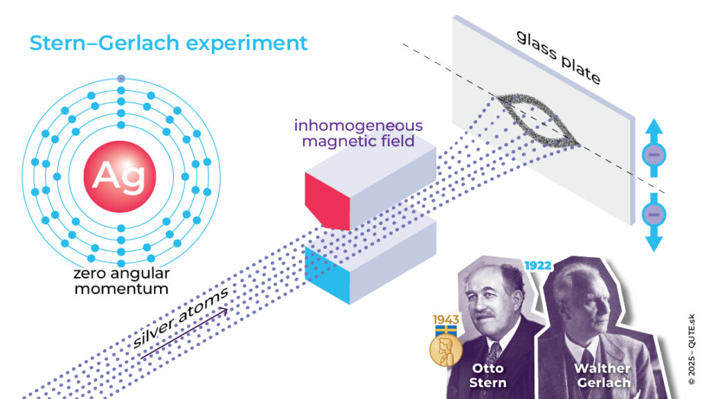 In 1921, O. Stern devised an experiment that he later carried out together with W. Gerlach. They directed a beam of silver atoms through an inhomogeneous magnetic field and observed that the beam split into two. Some atoms were deflected upward, others downward. Although an atom is electrically neutral, it can still be sensitive to a magnetic field thanks to its angular momentum. In some respects, the situation is similar to the splitting of spectral lines. However, there was a catch. Angular momentum is a three-dimensional vector, but its three mutually perpendicular components are quantum indeterminate.