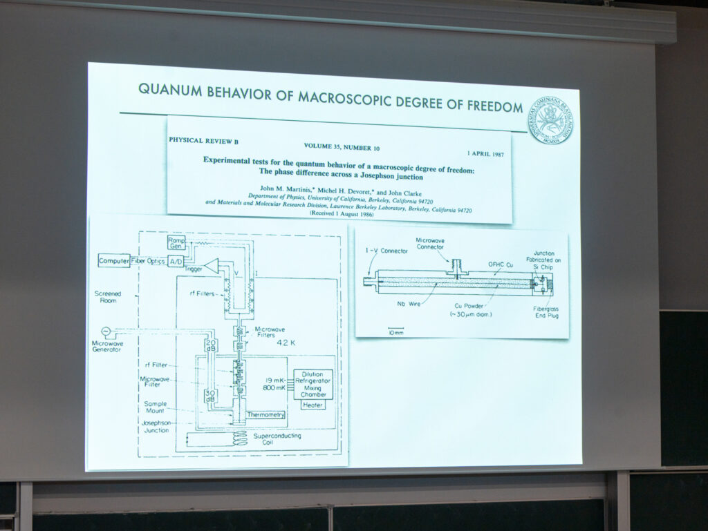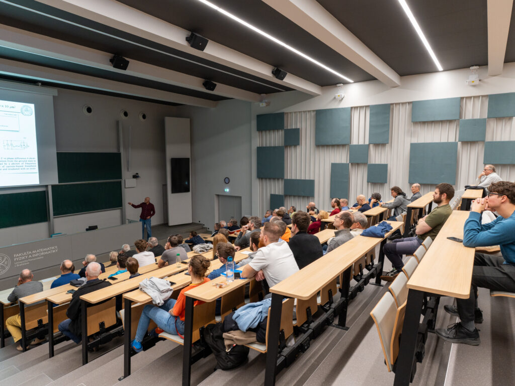 Prof. Grajcar vo svojej prednáške predstavil Nobelovu cenu za fyziku 2025, ktorú získali John Clarke, Michel Devoret a John Martinis za objav makroskopického kvantového tunelovania a kvantovania energie v elektrickom obvode – tento prielom umožnil realizáciu zariadení, ktoré môžeme chápať ako kvantové bity (qubity) na makroskopickej úrovni. Vysvetlil vedecký a technologický význam tohto objavu a prepojil základné kvantové javy s rýchlo sa rozvíjajúcimi oblasťami kvantových počítačov, kvantových simulátorov a kvantovo-limitovaných detektorov. Tieto technológie nielen posúvajú hranice základnej fyziky – napríklad pri hľadaní tmavej hmoty alebo testovaní kvantových interpretácií – ale ukazujú tiež svoj praktický potenciál v chémii, materiálových vedách, mikroelektronike a dokonca aj v objavovaní nových liekov.