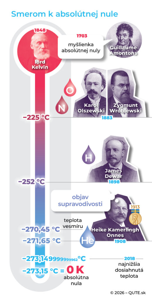 Lord Kelvin ako prvý určil hodnotu absolútnej nuly. Obrázok znázorňuje časový vývoj od jej myšlienky k doposiaľ najnižšej dosiahnutej teplote.